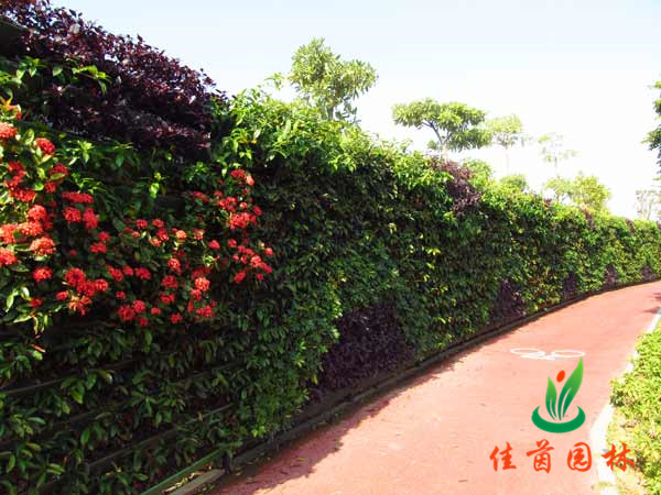 壁面绿化是指在与水平面垂直或接近垂直的各种建筑物外表面上进行的绿化。包括攀援类壁面绿化和设施类壁面绿化。攀援类壁面绿化是利用攀援类植物吸附、缠绕、卷须、钩刺等攀缘特性,使其在生长过程中依附于建筑物的垂直表面。攀援类壁面绿化的问题在于不仅会对墙面造成一定破坏,而且需要很长时间才能布满整个墙壁,绿化速度慢,绿化高度也有限制。设施类壁面绿化是近年来新兴的壁面绿化技术,在墙壁外表面建立构架支持容器模块,基质装入容器,形成垂直于水平面的种植土层,容器内植入合适的植物,完成壁面绿化。设施类壁面绿化不仅必须有构架支撑,而且多数需有配套的灌溉系统。